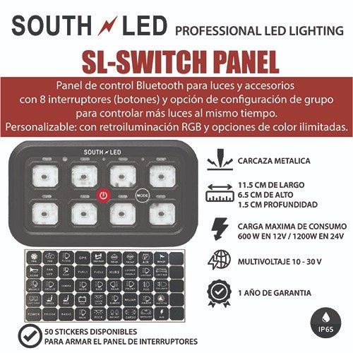 marca SOUTH LED con 8 interruptores (botones) y opción de configuración de grupo